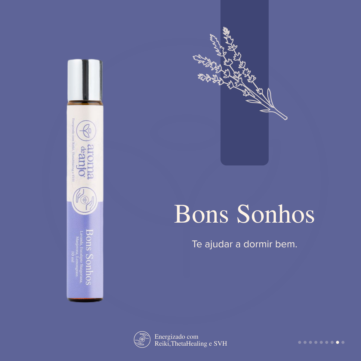 Além dos benefícios dos óleos essenciais, nosso roll-on oferece um diferencial exclusivo: uma programação energética com terapias de Reiki, SVH e ThetaHealing. Essas terapias elevam o padrão vibratório do produto, potencializando seus efeitos e direcionando a sinergia dos óleos essenciais para alcançar o resultado desejado com mais facilidade. Essa combinação única promove aterramento e relaxamento profundo, garantindo que você tenha uma experiência de repouso sereno e restaurador.