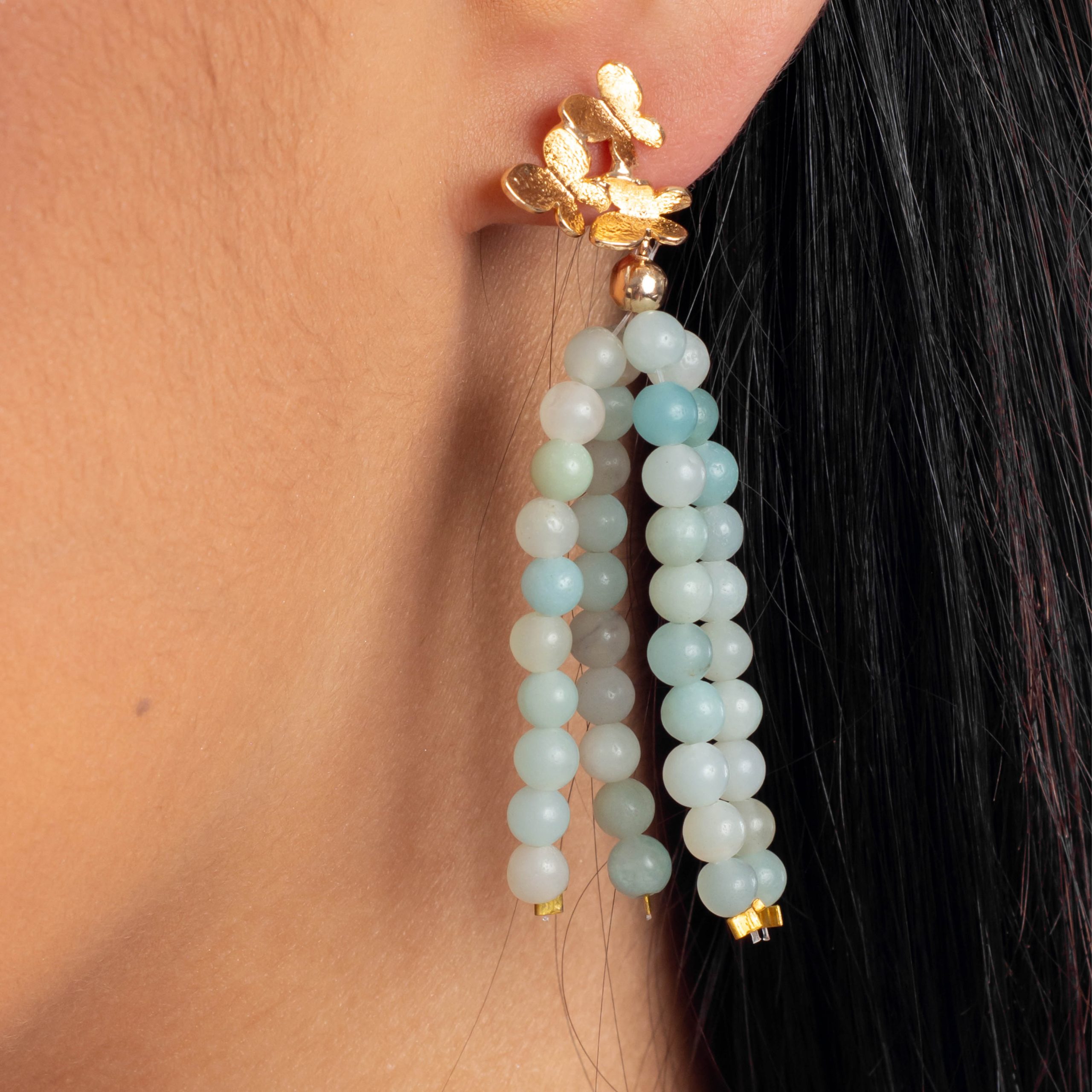 Feitos com pedras naturais de 4mm de Amazonita, que funciona como um poderoso amuleto para atrair sorte, abrir os caminhos para o sucesso e afastar energias negativas.