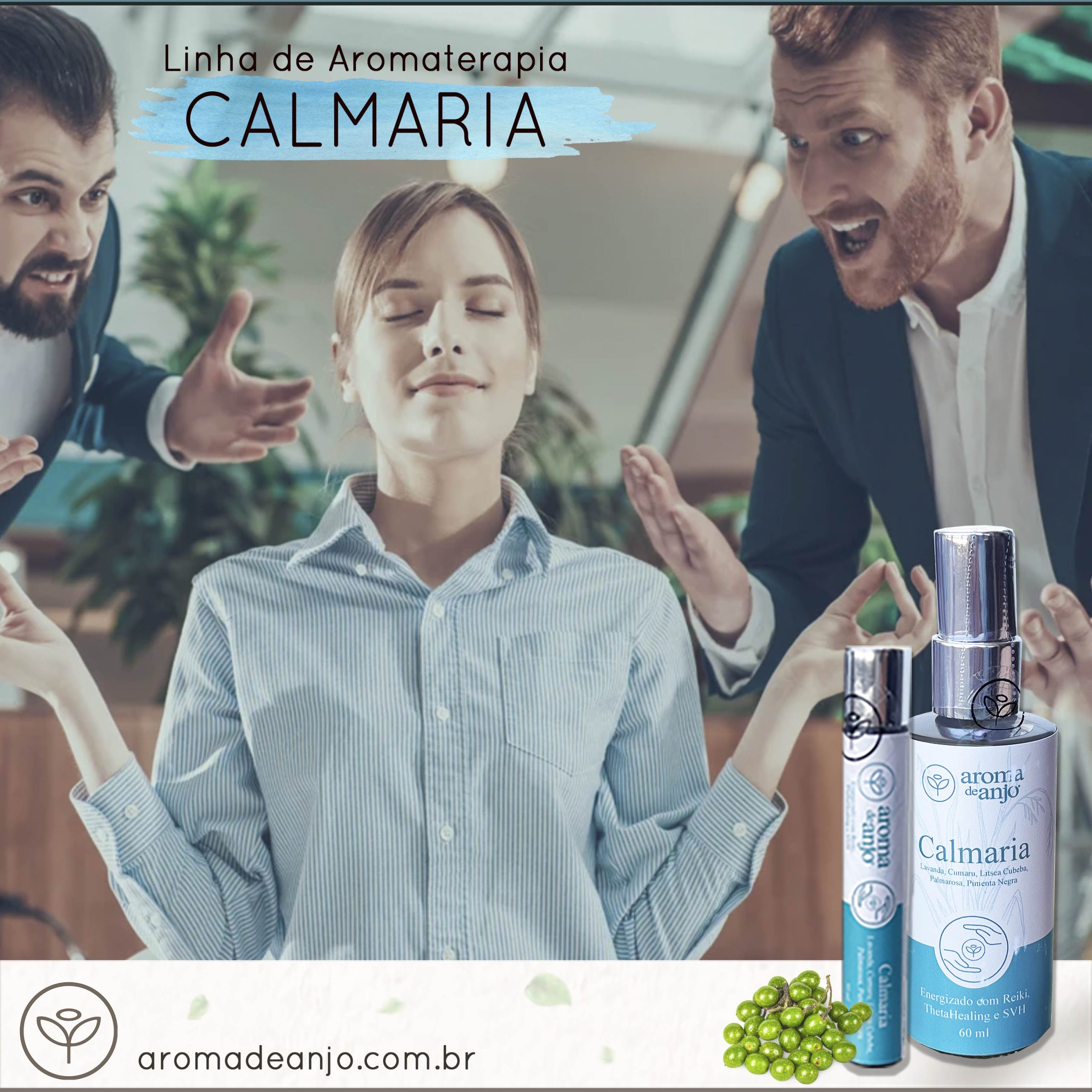 Além dos óleos essenciais cuidadosamente selecionados, o “Calmaria” conta com uma programação energética exclusiva, utilizando terapias de Reiki, SVH e ThetaHealing. Essas terapias elevam o padrão vibratório do produto, ajudando você a se sentir menos reativo, mais centrado e protegido. Ele promove aterramento e cria uma barreira energética, permitindo que você mantenha o equilíbrio e a calma em qualquer situação.